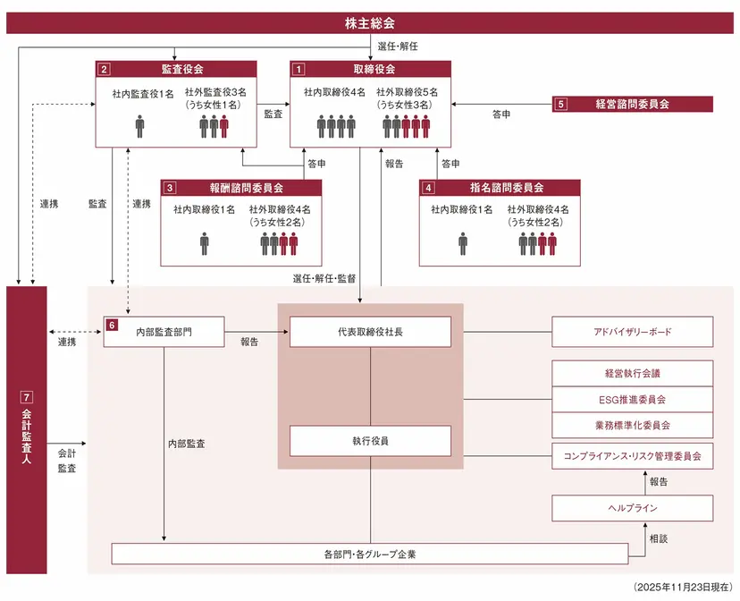 当グループでは、迅速な意思決定と経営の透明性を確保するため、取締役会を中心としたガバナンス体制を構築しています。
